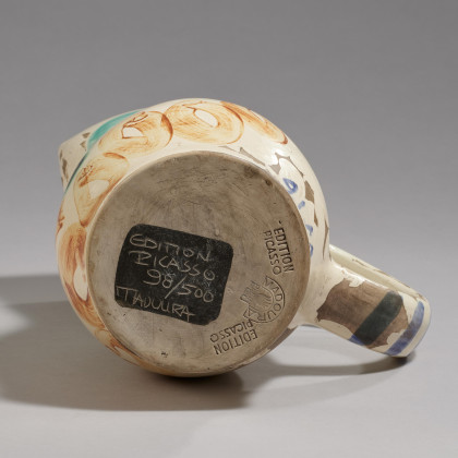 Bezeichnung: Stempel auf der Unterseite: MADOURA PLEIN FEU und EDITION PICASSO. Hier zudem bezeichnet und nummeriert: EDITION PICASSO 98/500 MADOURA.