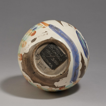 Bezeichnung: Stempel auf der Unterseite: MADOURA PLEIN FEU und EDITION PICASSO. Hier zudem bezeichnet und nummeriert: EDITION PICASSO 186/350 MADOURA.