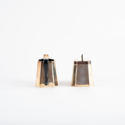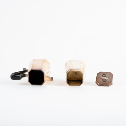 VIERTEILIGES KAFFEE- UND TEESERVICE MIT FACETTIERTEN SEITEN.