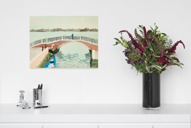 Patrick Procktor Unikate 1970er Stadtansicht Papierarbeit Aquarell Architektur