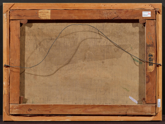 Auf dem Keilrahmen Atelier- und Ausstellungsetikett.