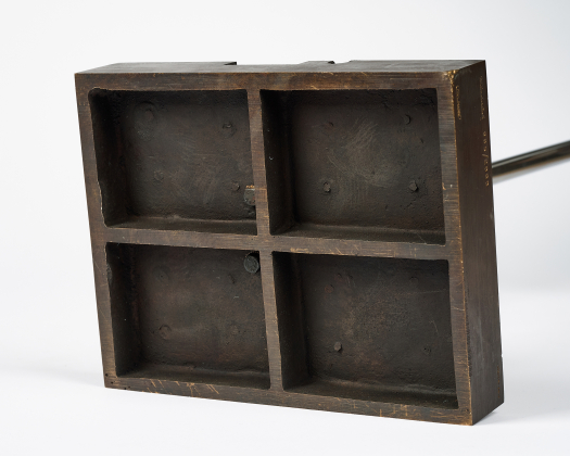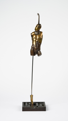 Technik: Bronze, braun patiniert und teilpoliert und Metallstab.