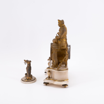 PENDULE MIT FRIEDRICH DEM GROßEN UND EIN BEISTELLHUND.