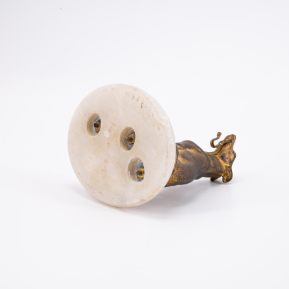Zustand C. Sockel auf der rechten Seite gerissen und sichtbar wieder eingeklebt. Einige der Ziffern des Zifferblatts verloren.