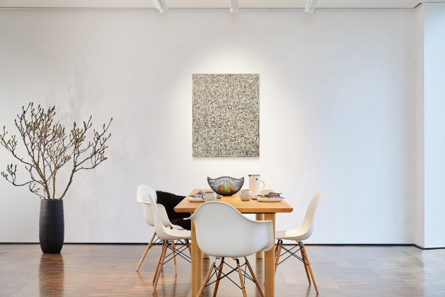 - Ausgesprochen dichte Komposition, in der sich Striche und Linien zu einer ornamentalen Struktur verbinden und eine tiefe Räumlichkeit entstehen lassen