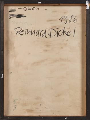 Bezeichnung: Datiert und signiert verso: 1986 Reinhard Dickel. Hier zudem bezeichnet.