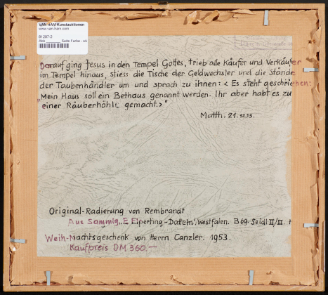 Bezeichnung: In der Platte signiert und datiert unten rechts: "Rembrandt f 1635".