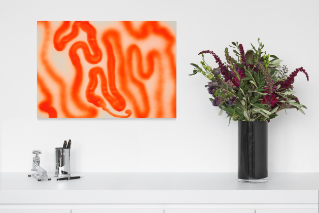 Renée Levi Schweiz Zeitgenössische Kunst Unikate 2000er Rahmen (56,5 x 70,5cm) Abstrakt Papierarbeit Sprühfarbe Farbe