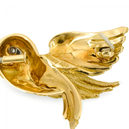 Beschreibung: Filigrane, dreidimensional-gearbeitete Vogel-Brosche.