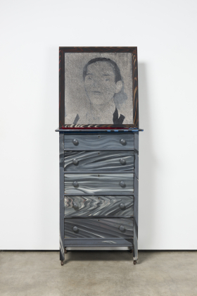 Der Beginn der kreativen Auseinandersetzung mit Skulptur und Malerei im Werk von Richard Artschwager wird begründet im Jahr 1962 mit dem Werk "Portrait I". Als der Ursprung einer neuen Phase in Artschwagers Ouvre kombiniert das Werk eine gewöhnliche Schlafzimmer Kommode mit einem gerahmten Gemälde, welches ein Männerporträt zeigt. Betitelt als erstes in der Reihe, beginnt Artschwager mit diesem Werk seine ihm eigene Ästhetik, die ihn bis zu seinem Tod 2013 definiert.