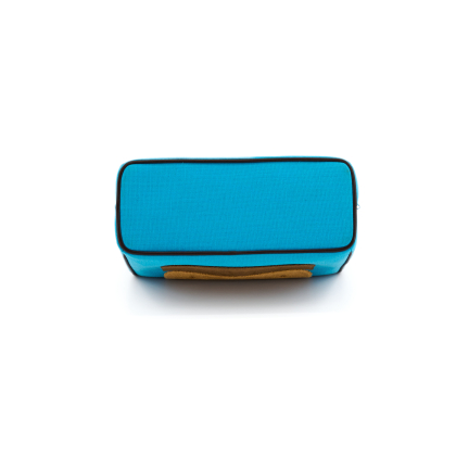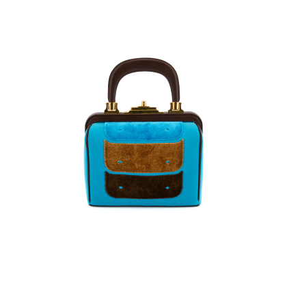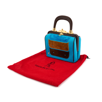 Material: Türkiser Stoff, Leder, goldene Metallbeschläge.
