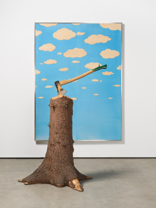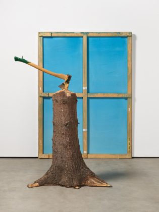 Maße: Gemälde: 190 x 140cm. Baumstumpf mit Beil ca: 180 x 141 x 4cm.