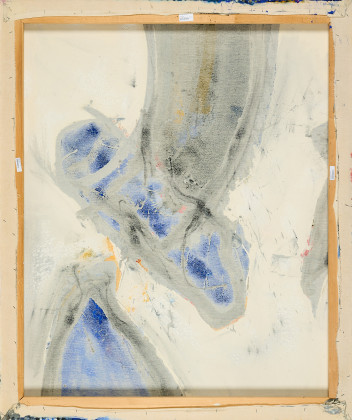 Geringe Leinwandspannung. Minimale Bereibungen der Kanten. Ansonsten sehr guter Zustand.