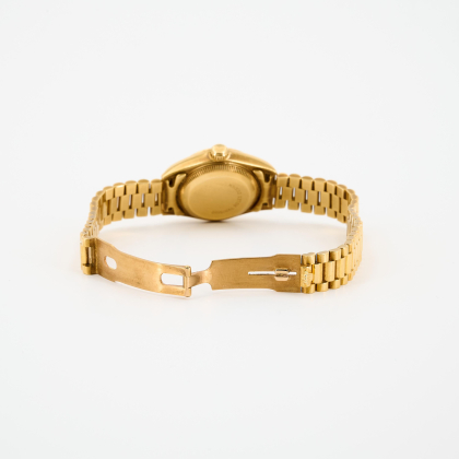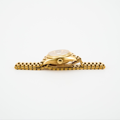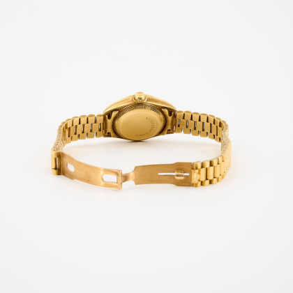 Gehäuse/Armband: 750/- Gelbgold, Gliederband mit Crownclasp, Zffbl. und Zeiger golden, Brillant Indizes, Leuchtmasse.