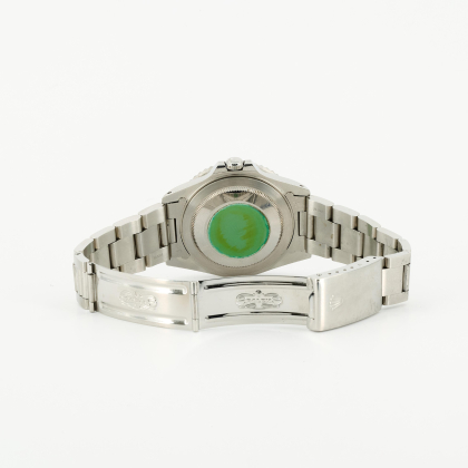 Gehäuse/Armband: Stahl, Oysterband mit Faltschließe, Zffbl. schwarz, Zeiger und Indizes silber, Leuchtmasse.