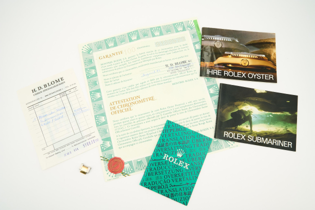 Accessoires: Ja. Chronometerbescheinigung, Submariner Booklet, Oyster Booklet, Kaufrechnung Blome und 1 Ersatzglied.