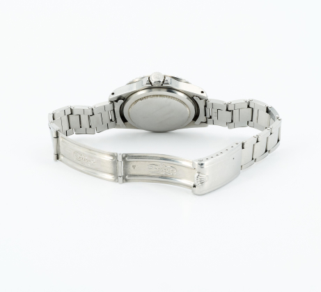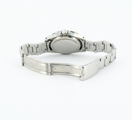 Gehäuse/Armband: Stahl, drehbare Lünette, Oysterband mit Oysterclasp, Zffbl. schwarz, Zeiger silbern, Indizes cremefarben, Leuchtmasse.