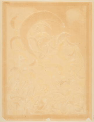 Blatt ungleichmäßig gebräunt. Einzelne punktuelle Stockflecken. Verso Reste und Spuren alter Montierung. Ansonsten guter Zustand.