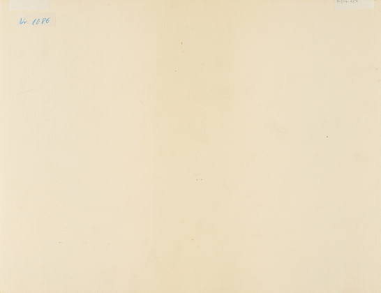 Mittig schwache vertikale Knickspur, nur von hinten sichtbar. Kanten mit oberflächlichen Papierverletzungen, teils unter Farbverlust. Seitliche Ränder wölben sich hoch. Verso oben Montierungsreste. Ansonsten guter Zustand.