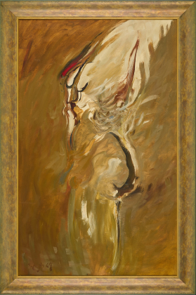Geringe Leinwandspannung. Vereinzelt minimale Kratzspuren. Vereinzelt kleine Farbabplatzungen (max. ca. 0,5 x 0,5cm). Ansonsten guter Zustand. Das Werk wurde für die Katalogbeschreibung nicht ausgerahmt.