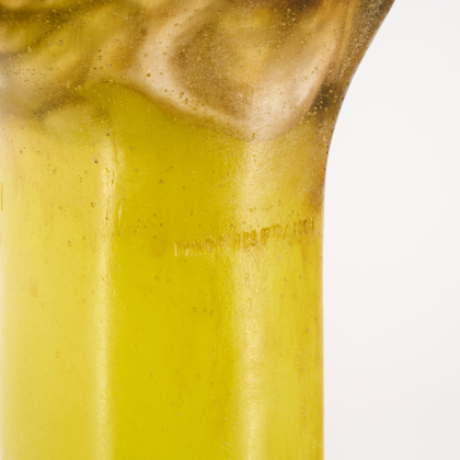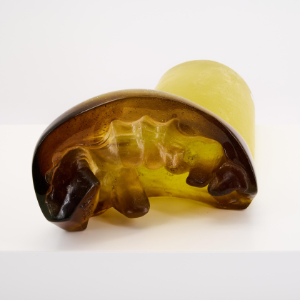Technik: Pâte de verre in Gelb und Braun, formgeschmolzen.