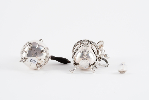 Sie wollen ein Objekt von Senfgefäß mit Maskarons und kleines Stielkännchen mit bekrönter Kartusche verkaufen?
