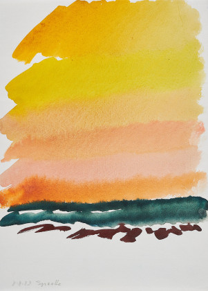 Siegward Sprotte Deutschland Karlsruher Malerschule Nachkriegskunst Unikate 1980er Sonnenuntergang Papierarbeit Aquarell Himmel