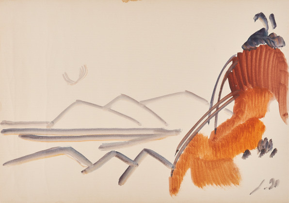 Siegward Sprotte Deutschland Karlsruher Malerschule Nachkriegskunst Unikate 1990er Landschaft Papierarbeit Gouache Berge