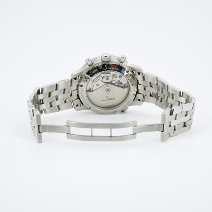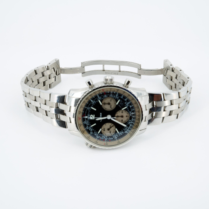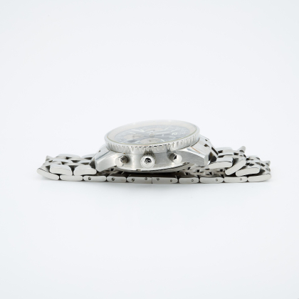 Gehäuse/Armband: Stahl, Gliederarmband mit Doppelfaltschließe, Zffbl. schwarz, Zeiger weiß, Indizes weiß, Leuchtmasse.