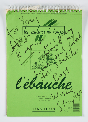 42 x 30cm. Signiert auf Zeichenblock: Stephan Wilks. Darüber an Kasper König gewidmet und