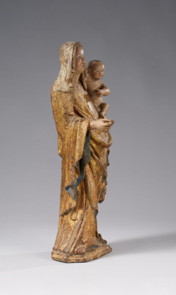 Technik: Lindenholz, dreiviertelrund geschnitzt, farbig gefasst.