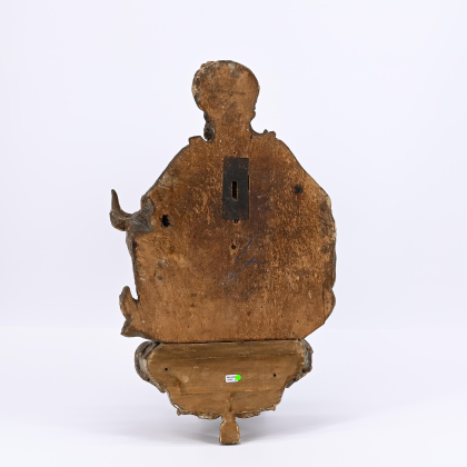 Technik: Holz geschnitzt und farbig und Gold gefasst.