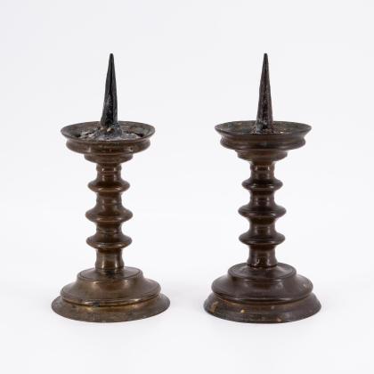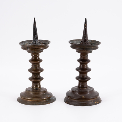 Beschreibung: Je runder, profilierter Fuß und der Schaft mit drei gedrückten und profilierten Nodi.
