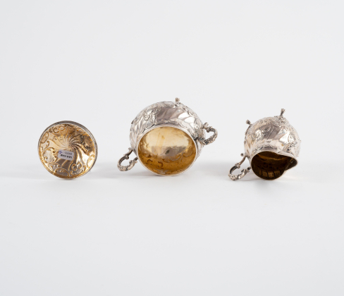 Technik: Silber, zweimal mit Innenvergoldung, Kunststoff.