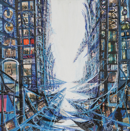 Thitz (Matthias Schemel) Deutschland Zeitgenössische Kunst Unikate 1990er Stadtansicht Gemälde Acryl Architektur