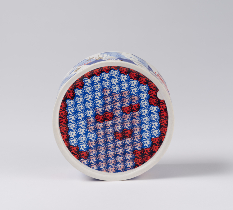 Technik: Farbserigrafie auf Käseverpackung (La Vache qui rit).