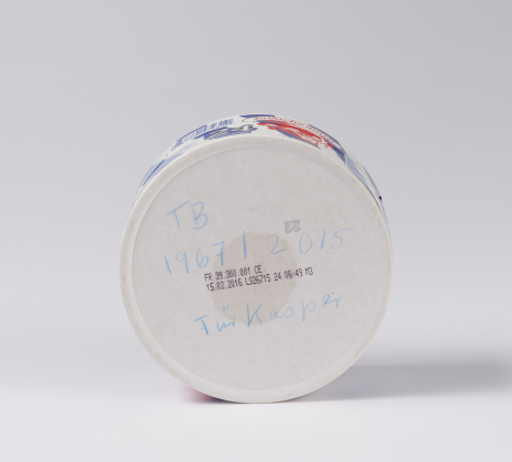 Bezeichnung: Monogrammiert, datiert und gewidmet auf der Unterseite der Dose: TB 1967/2015 Für Kasper.