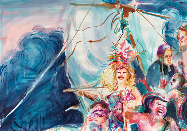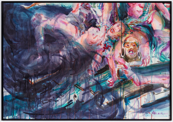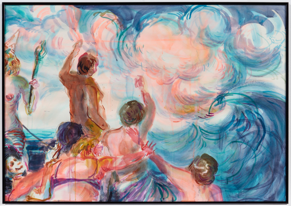 Ulrike Theusner Deutschland Zeitgenössische Kunst Unikate 2010er Rahmen. Im Rahmen beschrieben Meer Papierarbeit Tusche Figurengruppe