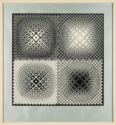 Victor Vasarely Frankreich Op Art Nachkriegskunst Druckgrafik Rahmen (84,5 x 78,5cm) Geometrische Abstraktion Druckgrafik Serigrafie