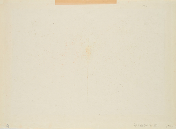 Minimal gebräunt, unter dem ehemaligen Passepartoutausschnitt leicht gebräunt. Minimale Bräunungsflecken und leichte Griffspuren in den Randbereichen. Verso minimal gebräunt sowie Reste alter Montierung und minimale Verschmutzungen. Ansonsten guter Zustand.