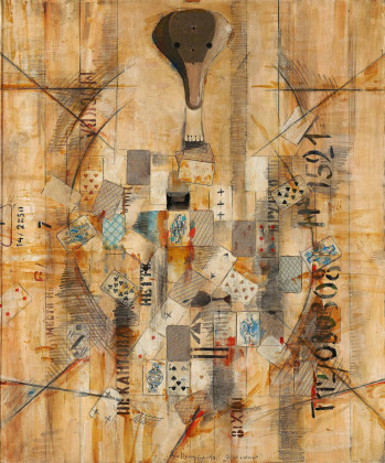 Bezeichnung: Signiert, datiert und betitelt unten mittig: Nemukhin-90 "Joker" (kyrillisch). Sowie verso oben rechts nochmals betitelt, signiert und datiert.