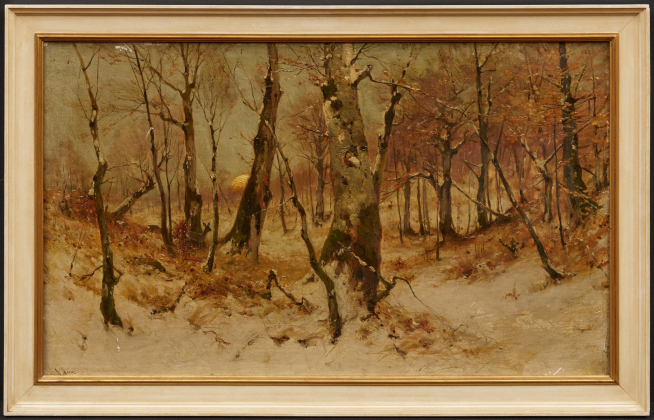 Walter Moras Deutschland Münchner Schule Berliner Schule 2.H. 19.Jh. Gemälde Rahmen Waldlandschaft Malerei Winter