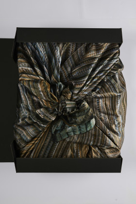 Der Seidenschal ist mit einem Detail des Werks "Straight" aus dem Jahr 2008 bedruckt, mit dem Ai Weiwei an das Erdbeben in Sichuan erinnert. In originalem Karton