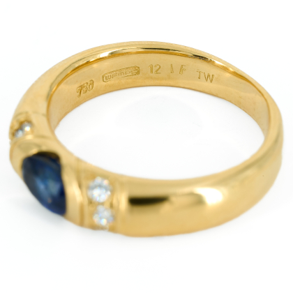 Edelsteine: 1 Saphir im Oval-Schliff ca. 0,6 ct.