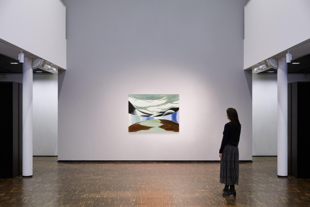Die angebotene Arbeit zeigt eine Gebirgslandschaft, die aufgrund ihrer zurückhaltenden Farbigkeit karg und nordisch wirkt. Konvex und konkav geformte Linien bestimmen den Bildaufbau und erwecken den Eindruck, als würde man diese Landschaft durch zwei Linsen betrachten. Hier lotet Sasnal die Grenzen und Möglichkeiten der Darstellung aus und untersucht menschliche Seh- und Wahrnehmungsprozesse, die für sein Schaffen von zentraler Bedeutung sind.