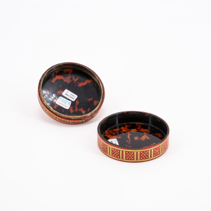 Technik: Roter Lack, Gold à trois couleurs, Schildpatt, Metall vergoldet.