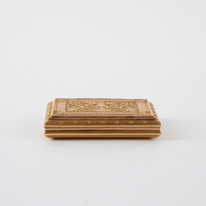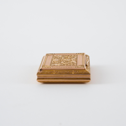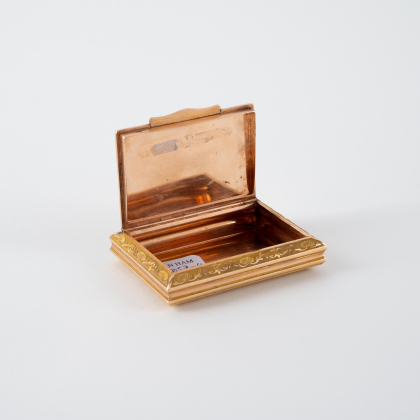 Beschreibung: Rechteckige Form mit scharniertem Deckel.