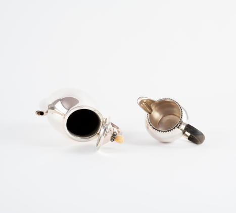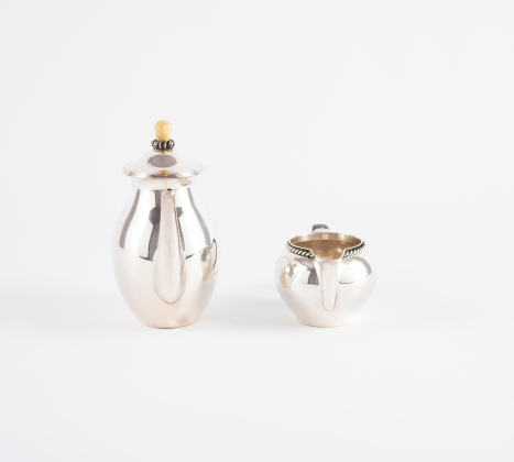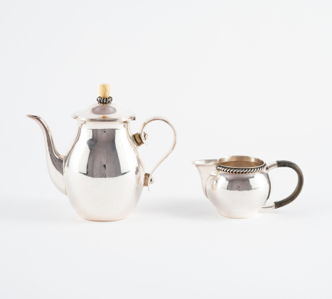 ZUCKERDOSE & MILCHKÄNNCHEN, KAFFEEKANNE, SALIERE, ZWEI SAUCENPFÄNNCHEN, ZWEI KLEINE ANBIETSCHALEN.